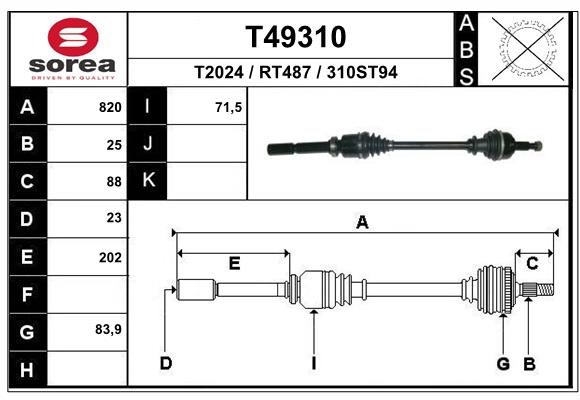 Автозапчасти aza.by / Коробка передач / Полуоси / Полуось EAI T49310