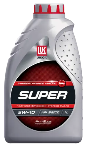 ЛУКОЙЛ СУПЕР рекомендуется для четырехтактных бензиновых и дизельных двигателей легковых автомобилей и легких автофургонов, в особенности для форсированных двигателей. СВОЙСТВА И ПРЕИМУЩЕСТВА: -Обладают высокими антиокислительными и диспергирующими свойствами; -Предотвращают образование высоко- и низкотемпературных отложений на деталях двигателя; -Масла классов вязкости 5W-40, 10W-40 обеспечивают легкий пуск двигателя при отрицательных температурах при одновременном снижении пусковых износов;