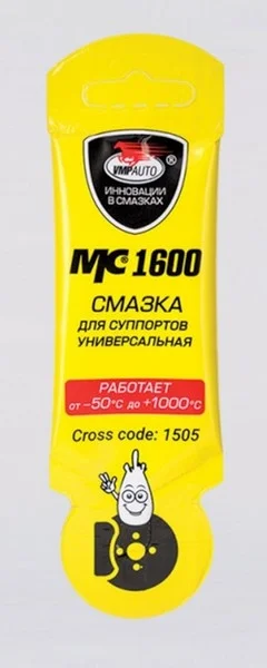 Смазка для тормозной системы МС-1600 5 г - специализированная смазка на основе кремнийорганической жидкости с добавлением многофункциональных присадок. Обеспечивает подвижность деталей суппорта, равномерный износ колодок, сокращает тормозной путь. Обеспечивает защиту направляющих от закисания и коррозии, эластичность и герметичность резиновых деталей, защиту тормозных колодок от прикипания, облегченный ход поршня в цилиндре. Не использовать с тормозной жидкостью класса DOT 5.0.